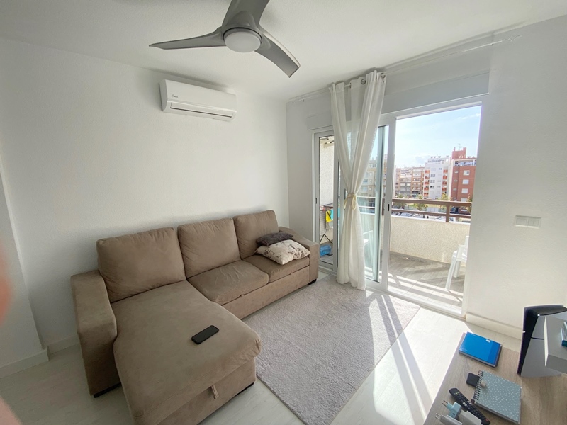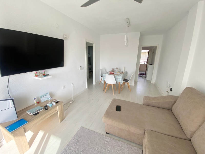 Este hermoso apartamento está ubicado en el tercera planta y ofrece una vista espectacular. Cuenta con dos dormitorios, ha sido completamente renovado y dispone de mucha luz natural, con abundante sol. Además, cuenta con piscina comunitaria. Está situado cerca de la terminal de autobuses, de restaurantes, supermercados y todo lo que puedas necesitar, y a tan solo 600 metros del mar.