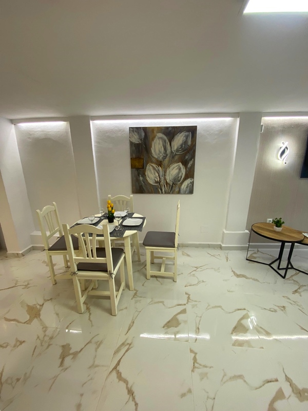 En las plantas superiores se encuentra la vivienda principal, distribuida en dos dormitorios, un aseo, un baño completo, dos terrazas con vistas al mar y un jardín trasero privado, además de contar también con acceso independiente.